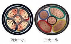 低壓三相四(五)線供配電的綜合負(fù)載線路的零線的材質(zhì)與截面積應(yīng)與相線相同。問題所問的四大一小的五芯電纜是用于三相五線綜合負(fù)載供配電使用的。三大二小的五芯電纜是用于三相五...